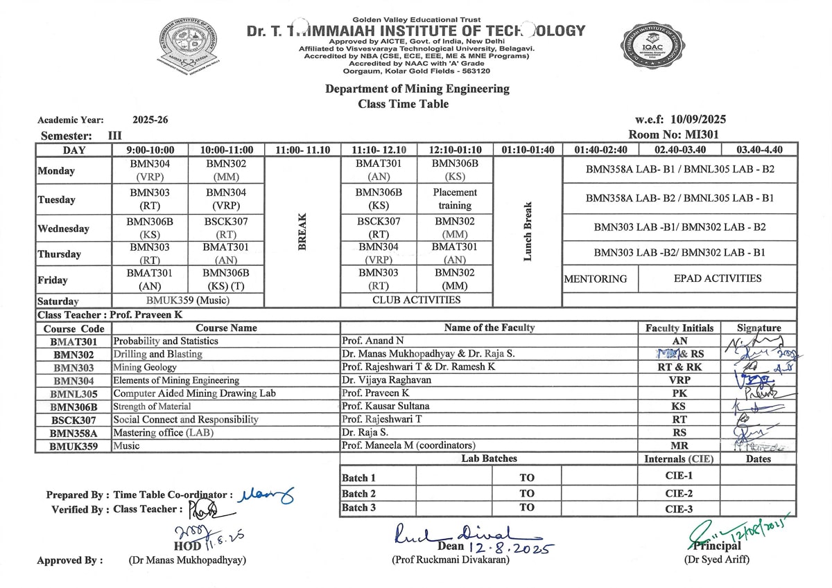 | 1 | Mineral Identification | 2nd | Mr. Dinesh, Mr. Sanjay M, Ms. Vidhya G |